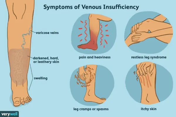 - Chronic venous insufficiency, where long-term high pressure in leg veins causes swelling, skin changes, or ulcers
